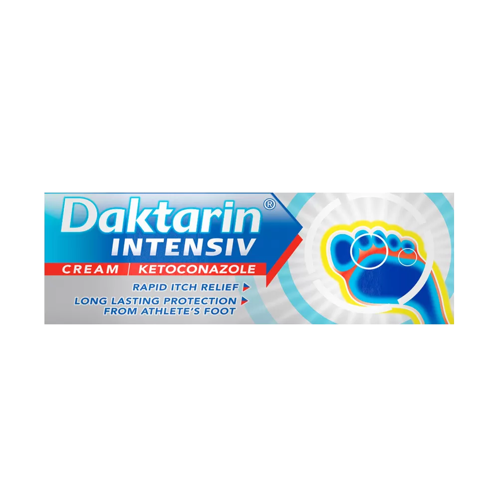 Daktarin Intensiv Cream contains ketoconazole 2% to treat fungal skin infections such as athlete’s foot and jock itch while relieving itching and irritation.