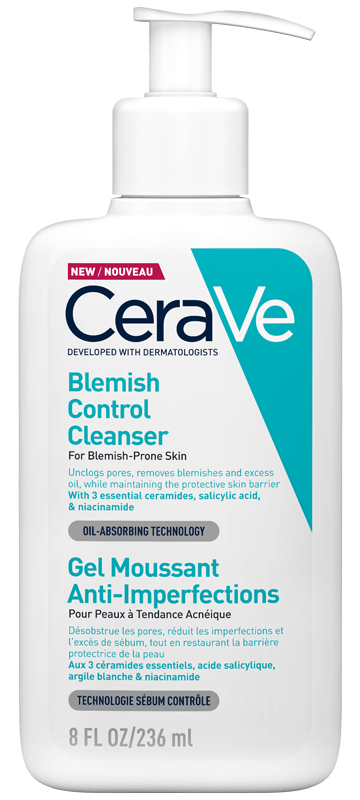 CeraVe Blemish Control Cleanser 236ml is a dermatologist-developed facial cleanser specifically formulated for oily, acne-prone, and blemish-prone skin. Its gel-to-foam formula deeply cleanses the skin, unclogs pores, and helps reduce the appearance of blackheads and breakouts without over-drying.