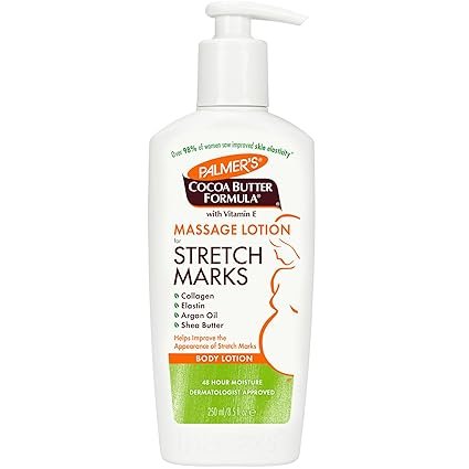 Palmer’s Cocoa Butter Formula Massage Lotion is a dermatologist-tested, hypoallergenic lotion that hydrates, improves elasticity, and helps reduce the appearance of stretch marks.