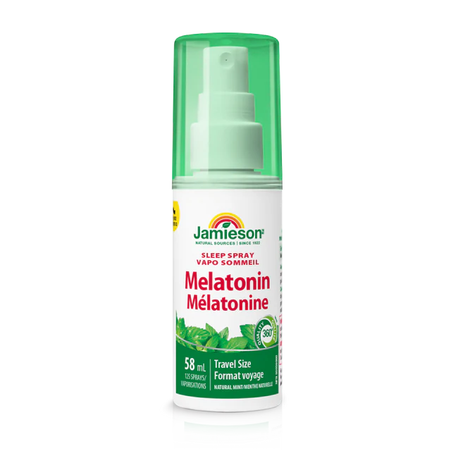 Jamieson Melatonin Sleep Spray helps reduce sleep onset time, supports sleep cycle adjustment, and offers a convenient, fast-absorbing alternative to tablets.