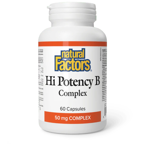Natural Factors Hi Potency B Complex supports energy production, nerve health, and stress management with a complete range of B vitamins.